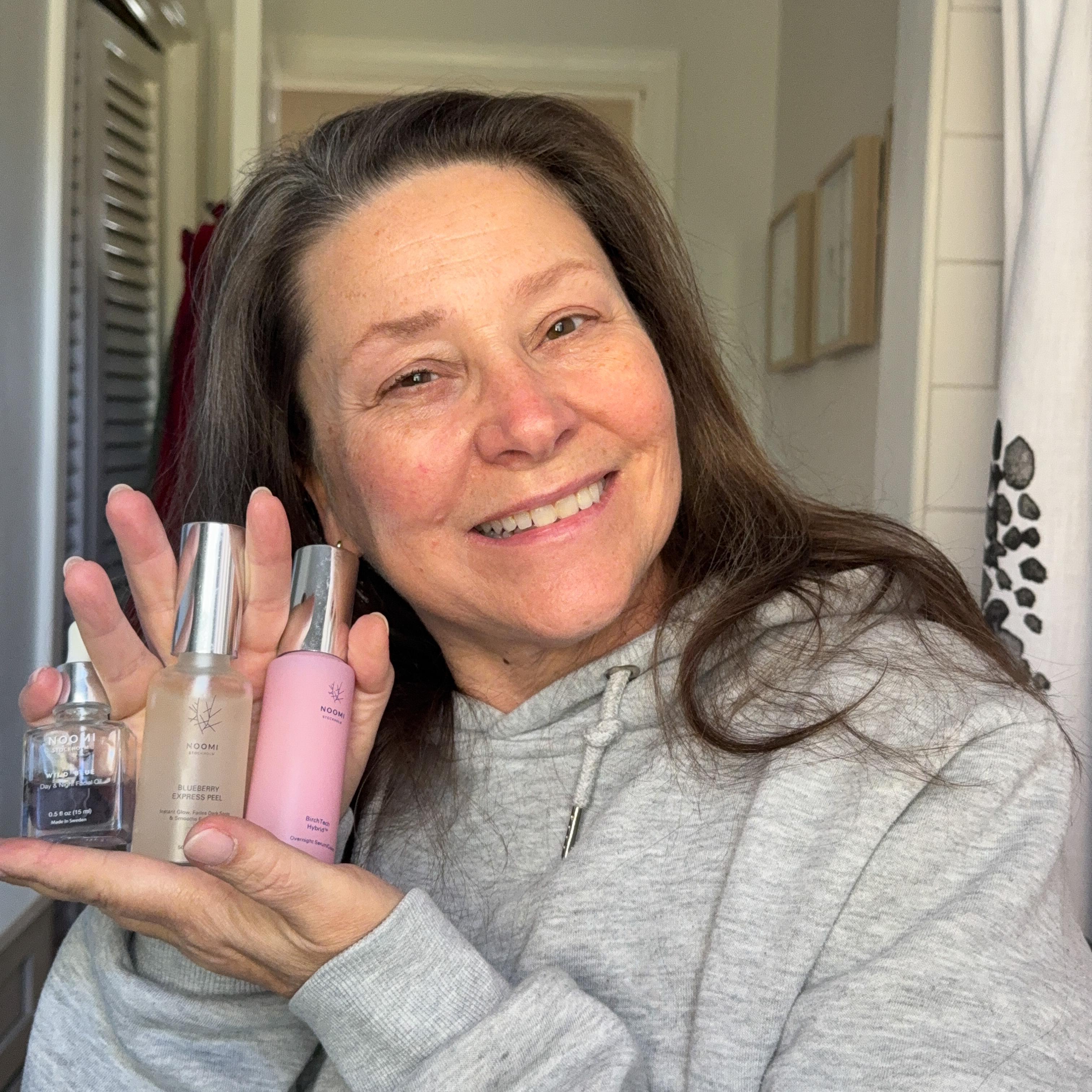 "At 68, my skin feels firmer and more lifted, and I don’t need a dozen products—NOOMI does it all. It’s simple, effective, and something that actually works with beautiful ingredients."